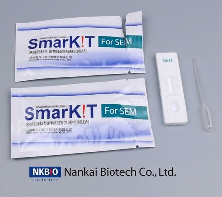 Kit de pruebas de detección rápida de diagnóstico alimentario Nankai Bioteches una prueba rápida de un paso para la detección cualitativa (o cuantitativa) deTetraciclinasLos nitrofuranos (AOZ,AMOZ,AHD,SEM), el clenbuterol, el salbutamol, la ractopamina, Cloramfenicol, sulfonamidas, estreptomicina,QuinolonasResiduos de aflatoxina, zearalenona (ZEA), desoxinivalenol (DON), ocratoxina en miel, mariscos y pescados, ganado y carne, leche, piensos, huevos.