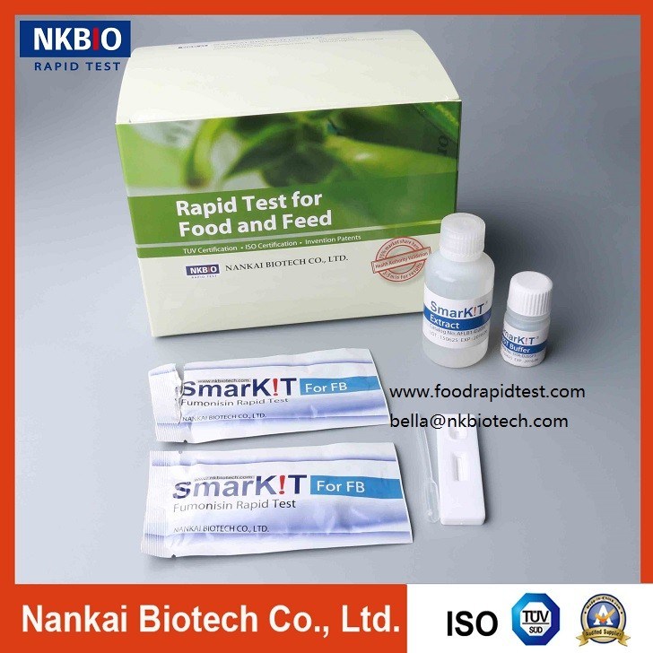 Nankai Biotech Fumonisin Rapid Test Strip se utiliza para detectar cualitativa o cuantitativamente la fumonisina en piensos y granos a un límite de detección de 200 ppb.El tiempo total del ensayo dura aproximadamente 15 minutos.