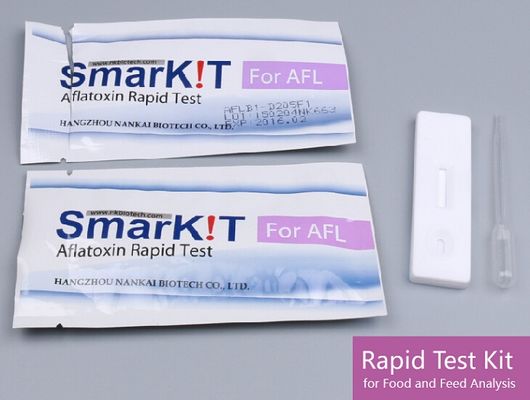 Hangzhou Nankai Biotech Aflatoxin B1 Rapid Test Kit es una prueba rápida de un paso para la detección cualitativa (o cuantitativa) de aflatoxina B1 en piensos y granos (trigo, salvado de trigo, maíz,el coco, mijo, harina, maíz, arroz, chile en polvo)en el límite de detección 5,10,20,50,100 ppb
