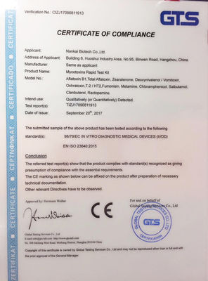 Hangzhou Nankai Biotech Fumonisin Rapid Test Kit es una prueba rápida de un paso para la detección cualitativa (o cuantitativa) de fumonisin en piensos y granos (trigo, salvado de trigo, maíz, coco,el mijo, harina, maíz, arroz, chile en polvo)en el límite de detección 5,10,20,50,100 ppb