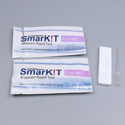 Hangzhou Nankai Biotech Aflatoxin B1 Rapid Test Kit es una prueba rápida de un paso para la detección cualitativa (o cuantitativa) de aflatoxina B1 en piensos y granos (trigo, salvado de trigo, maíz,el coco, mijo, harina, maíz, arroz, chile en polvo)en el límite de detección 5,10,20,50,100 ppb